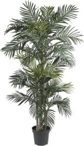 Anyone with allergies will appreciate that it’s made from synthetic, hypoallergenic materials. It’s also a perfect fit for apartment dwellers unable to hang live greenery. Those seeking an outdoor waterproof design should skip this model or plan to weather-proof it first, as it’s best for indoor spaces.